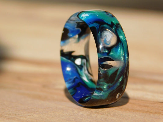 Westinghouse Double Black Line Butterscotch Micarta x Fordite Ring