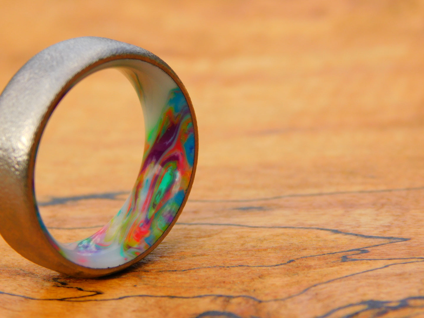 Brushed Titanium x Neon Pastel Resin Ring - Size 7.5